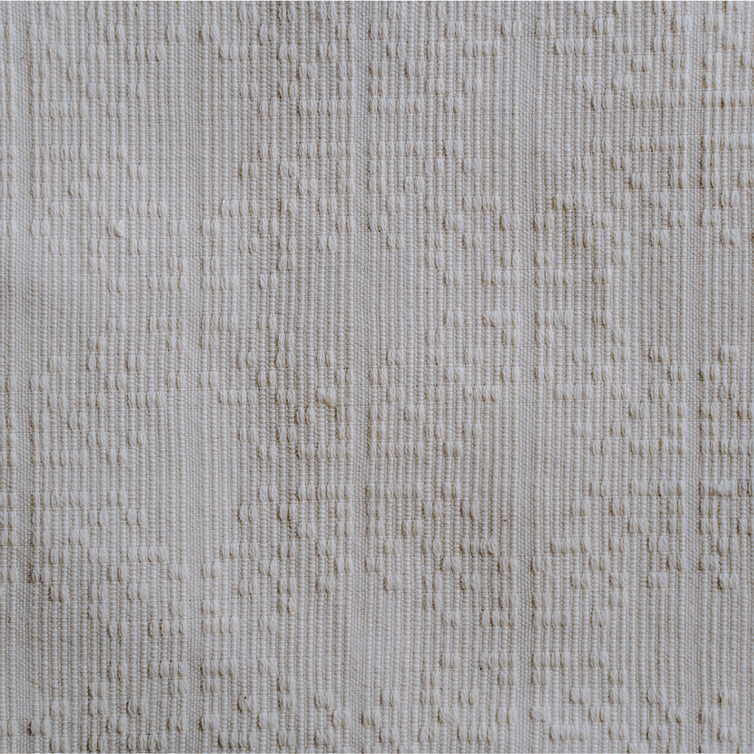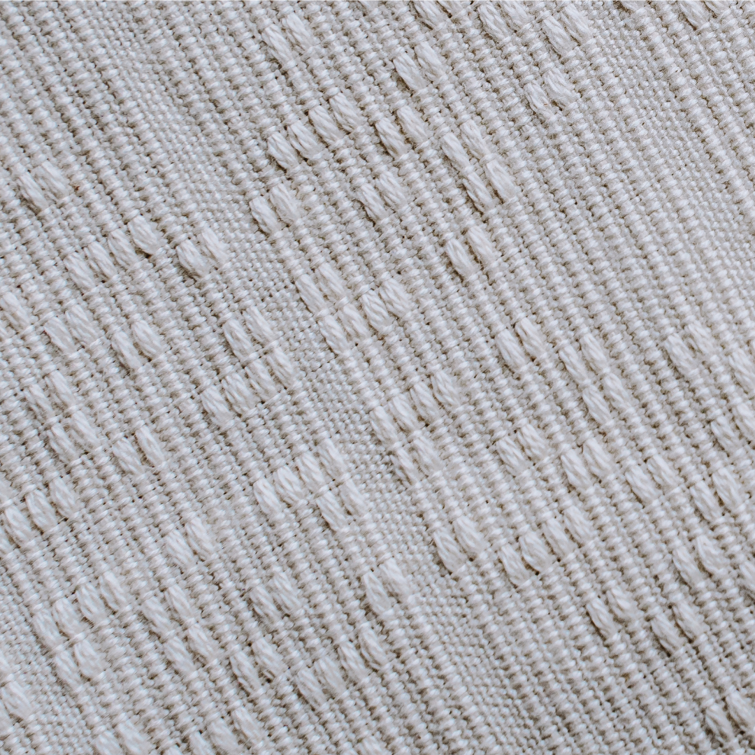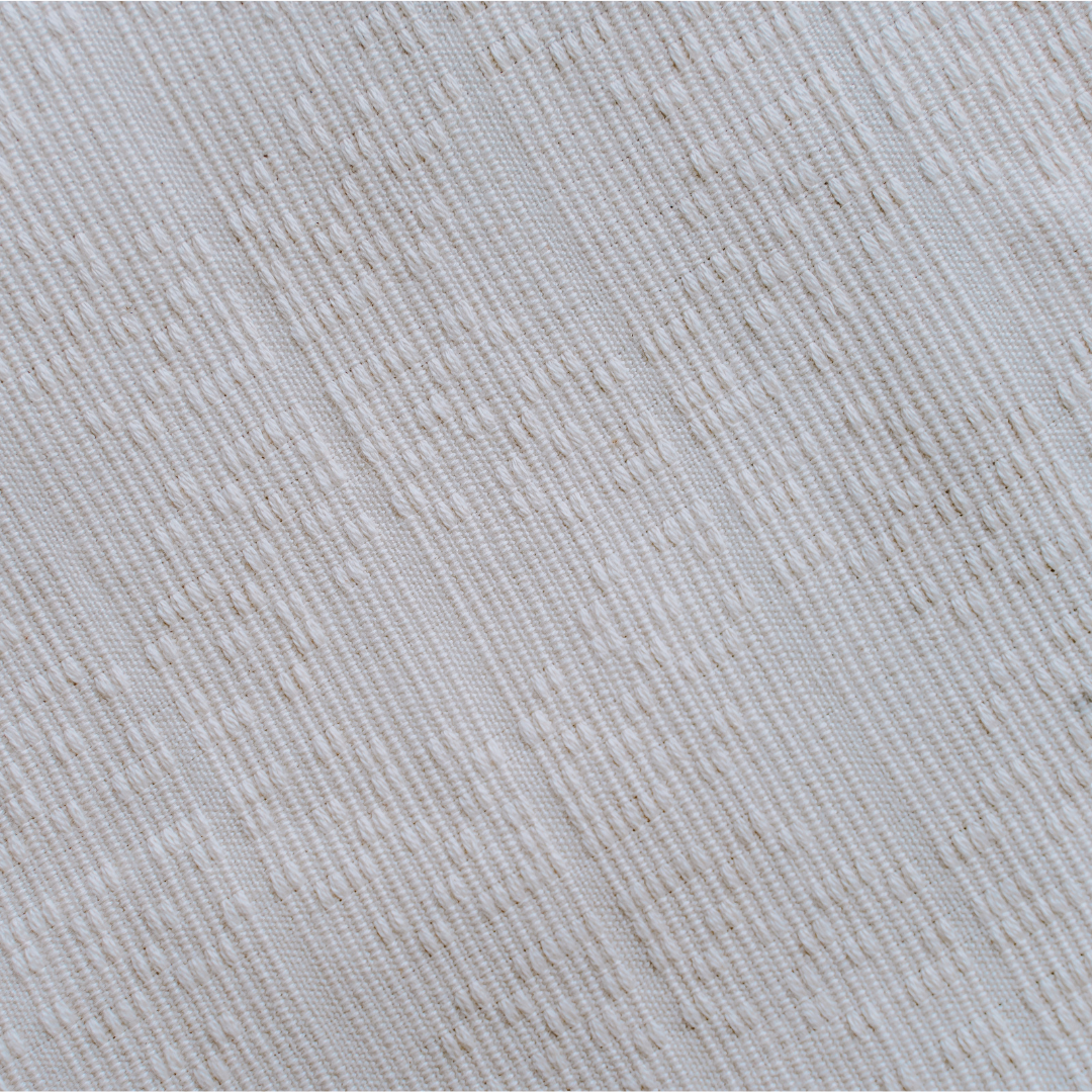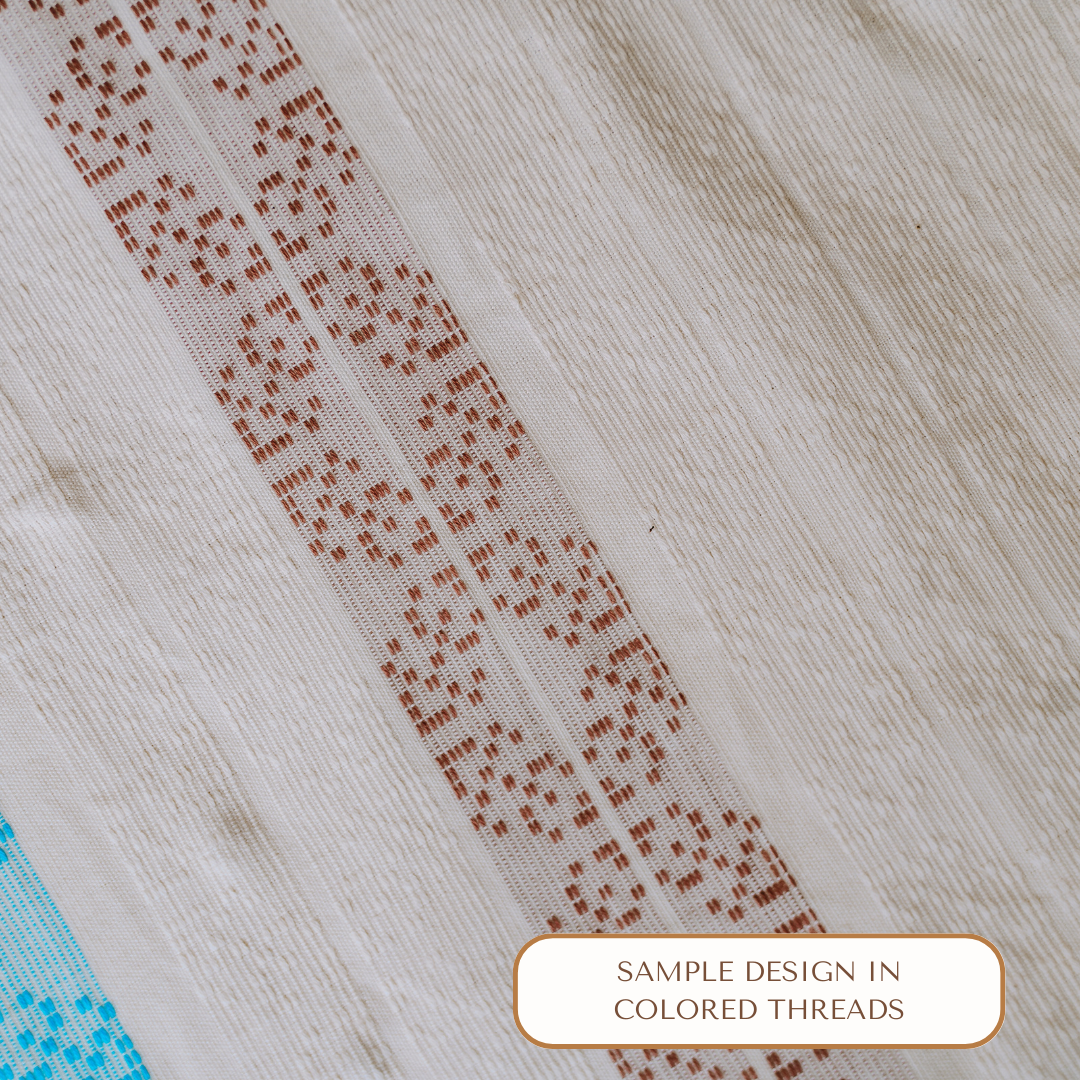 This handwoven textile is crafted from 100% combed cotton, 20Ne, 2-ply natural weaving yarn. It is skillfully woven by the Indag-an Primary Multi-Purpose Cooperative in Iloilo, Philippines. The woven pattern shows pixels combining to create a leaf, reminiscent of how the digital world mirrors the interconnectedness of nature. Crafted from 100% cotton, makes this the ideal choice for a wide array of accessories such as tote bags & pouches, and home textile products such as throw pillowcases, placemats, & napkins.